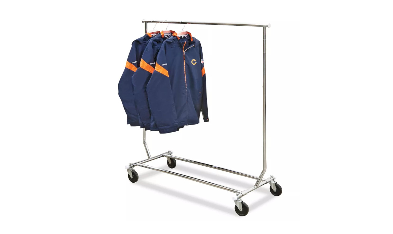 Portable, collapsible rolling storage units for organizing and transporting garments or fabric props in various settings. They feature an expandable 48" hangrail with 12" pull-out rods, adjustable height, and high capacity (e.g., H-1977 model holds double the garments). Equipped with 360° swivel casters for mobility and protective covers (vinyl/nylon), they enable quick setup and efficient storage in dynamic environments.